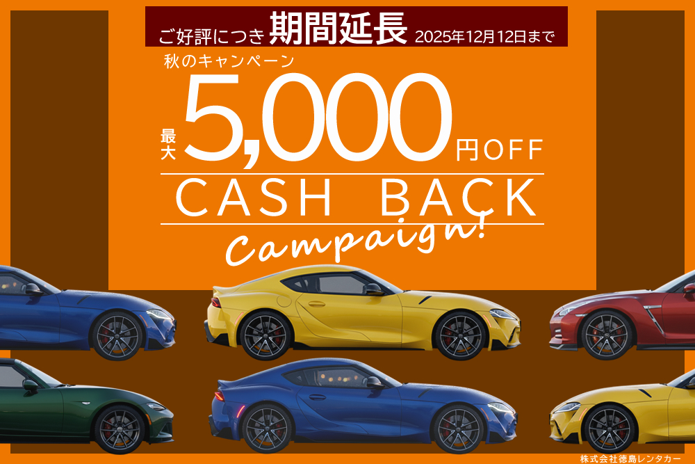 好評につき一度10月末で終了いたしました「秋のレンタカーキャンペーン」を、12月12日まで延長する運びとなりましたのでご案内させていただきます。