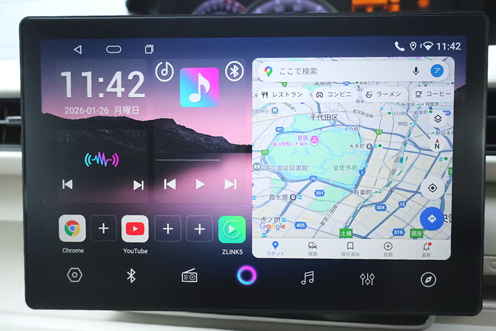 当店のディスプレイオーディオは、あなたのスマホと連動。使い慣れたGoogleマップやYahoo!カーナビを、11.8インチの大画面に映し出します